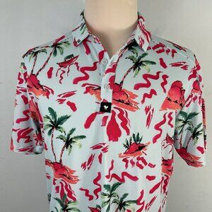 Bad Birdie Men's L Short Sleeves Golf Polo Shirt Hawaiian Tropical Print