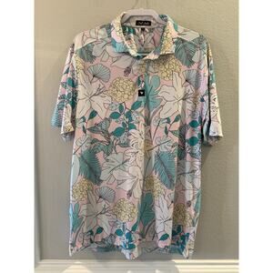 Bad Birdie Men's Pink Hawaiian Gardens Golf Polo Shirt Sz XL