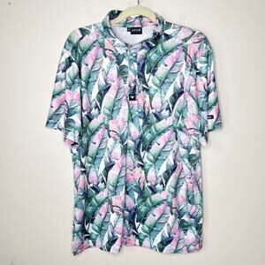 Bad Birdie Men's Size Large Feather Performance Golf Shirt EUC Bright Abstract