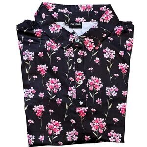 Bad Birdie Core Performance Black Arcadia Polo Pink Hydrangea Flowers in Men's XL