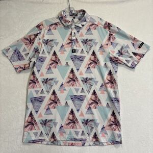 Bad Birdie Polo Shirt Men's Large Triangle Geometric Palm Tree Performance Golf