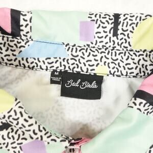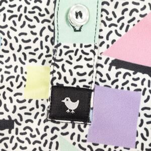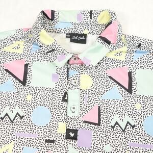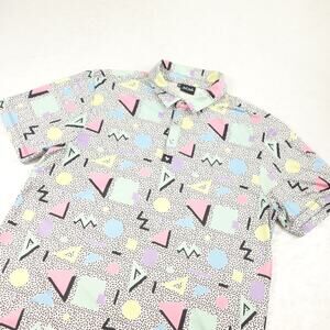 Bad Birdie Polo Shirt Mens Medium Multicolor Abstract All Over Print Golf 80s 90