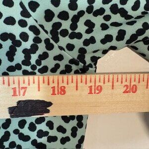 Pattern/Color: Mint green with black cheetah-style dot print; white bird logo at chest
