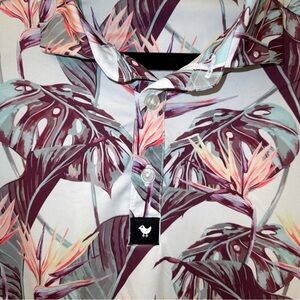 Like new, from a smoke free house. The Bad Birdie Shaka Polo brings some hang loose vibes to the course with you. Made from lightweight, wrinkle-resistant fabric, the Shaka Polo is perfect for any occasion but excels on the course. The breathable stretch fabric features an anti-odor and UPF 50+ finish for one of the most comfortable polo's in warm weather available. 4-Way Stretch Moisture-Wicking UPF 50+ Materials: 92% Polyester / 8% Spandex