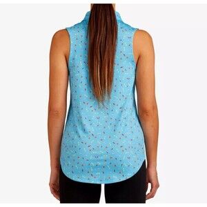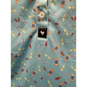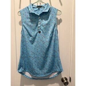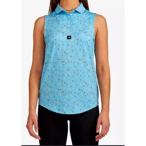 Bad Birdie Sleeveless Performance Bright Blue Canoe Boat Print Polo Women's L