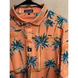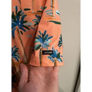 Bad Birdie Mens Large Orange Tropical Palm Tree Polo Shirt