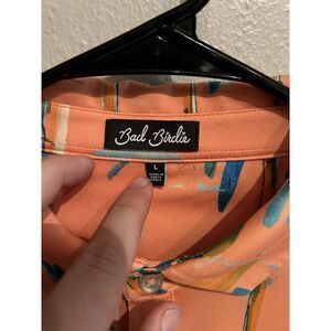 Bad Birdie Mens Large Orange Tropical Palm Tree Polo Shirt . Condition is Pre-owned - Excellent. Shipped with USPS Ground Advantage.