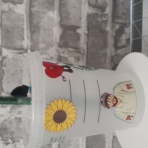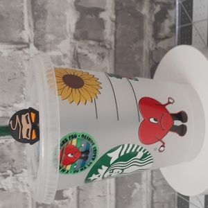 Bad Bunny 16 oz Starbucks cold cup w/ SB green straw & BB crocs charm.