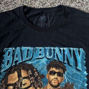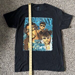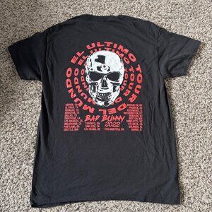 This stylish black t-shirt features vibrant graphics of Bad Bunny's 2022 El Último Tour Del Mundo, making it a standout piece for fans. Perfect for the SuperBowl