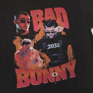 Bad Bunny Band Graphic Short Sleeve Crew Neck T Shirt Womens Size Large L Black