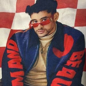 Unisex lightweight, polyester material, drawstring backpack bag with adjustable, cinched opening. Features Bad Bunny graphic on both sides. Gently used condition. No rips. One small spot in upper right corner, but you could just easily wear it on the other side. May come out with wash, but I don’t want to chance anything. Grab this today for the Bad Bunny fan in your life—even if that is yourself! See all pics.