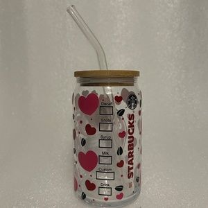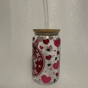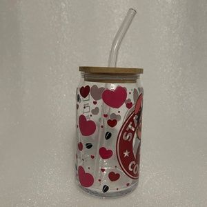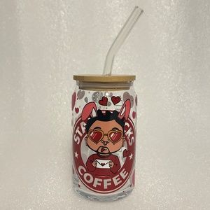 Bad Bunny Inspired Starbucks Coffee Glass Libby Cup w/ Lid and Glass Straw- 16oz