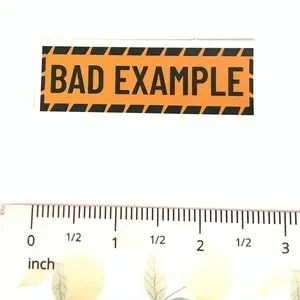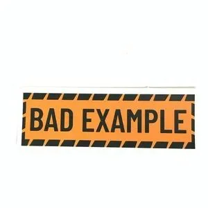 Bold orange and black warning sticker with 'BAD EXAMPLE' text.