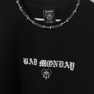 Bad Monday Barbed Cuff Black Crewneck Sweatshirt