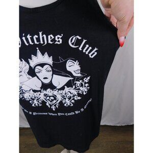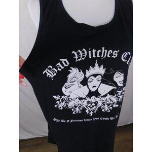 Join the coven in this pre-owned Essentials women’s L slim-fit black tank (25" long, 18" pit-to-pit)—100% cotton knit, white screen-print spells “Bad Witches Club” above three witch silhouettes & “Why be a Princess when You Could Be a...” Crew neck, sleeveless; perfect Modern & Minimal layer or solo hex. Made in Vietnam. The Witches Quest curation.