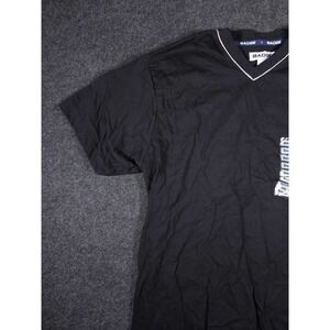 Badge Shirt Mens Small S Stretch Black Regular Short Sleeve V Neck Y2K NWT