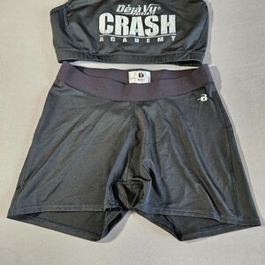 Badger Sport Women Bra & Boy Shorts Set Size M Black Activewear Gym Logo Stretch