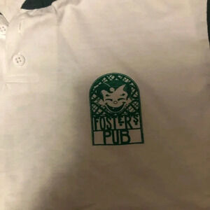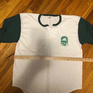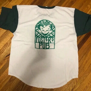 Badger sports T-Shirt in an XL, with white and green colors. Has a cool logo from Foster’s Pub on the front and the back. Two button on the front, excellent used condition. No rips, tears or stains.