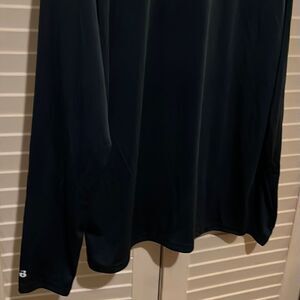 Badger deep, navy blue, quarter zip long sleeve, light pull over size large, has a silky feel to it