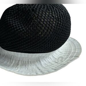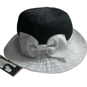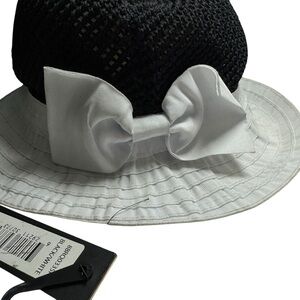 Badgley Mischa Women’s Crochet Crown Bucket Hat, white bow NEW