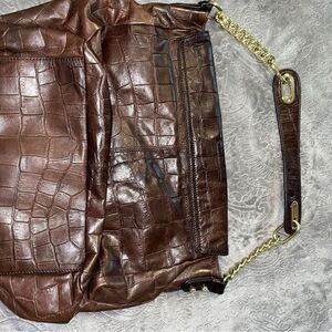 Large crocodile textured handbag. Hobo style. 12” flap, bad is approximately 12” by 14”.
