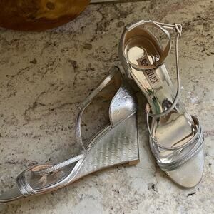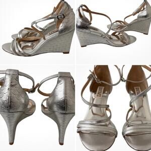 Badgley Mischka Womens Size 7.5 Melaney II Silver Wedge Dress Sandals EUC
