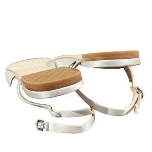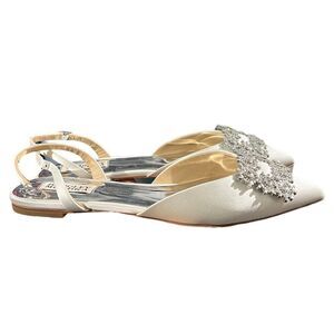 Badgley Mischka 6.5 White Satin Saga Crystal Flat Point Toe Slingbacks Silver