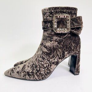 Badgley Mischka Adrian Brown Velvet Block Heel Booties Size 7.5