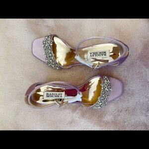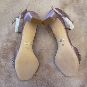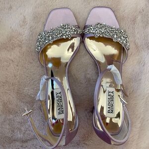 Brand new Badgley Mischka Alison block heel sandal. Size 7.5 in Lilac-satin color. Absolutely stunning shoes!!!