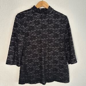Badgley Mischka American Glamour Black Lace Top Witchy Purple Gothic Fall Mesh