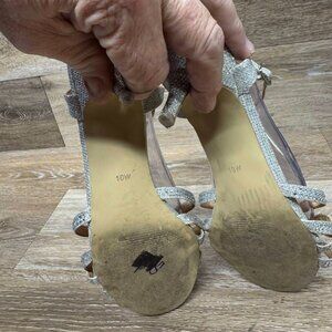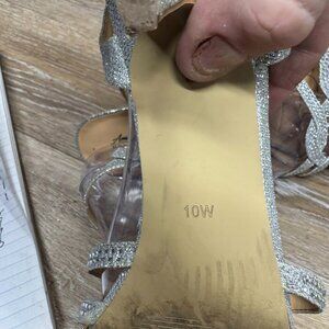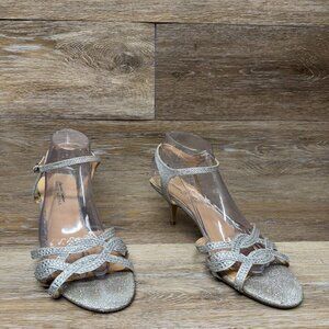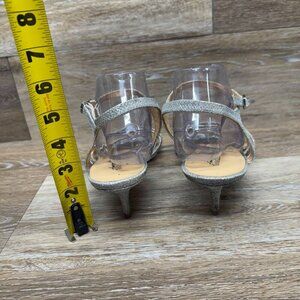 Step into elegance with the Badgley Mischka American Glamour Xabrina Jeweled Open Toe Pumps. Crafted with a sleek leather upper and featuring a dazzling jeweled accent, these pumps are a testament to classic sophistication with a touch of sparkle. The silver hue offers a versatile option that complements any ensemble, while the kitten heel style provides a subtle lift that's comfortable to wear from day to night. The pumps are designed with an open toe silhouette, perfect for pairing with your favorite dresses or tailored trousers. A secure buckle closure ensures a snug fit, making these heels as practical as they are stylish. Ideal for the fashion-forward woman who values both aesthetics and comfort, these size 10 pumps are a timeless addition to your shoe collection.