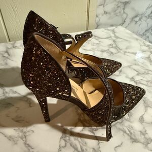 Badgley Mischka American Glamour Glitter Pointed Toe Heels Size 6