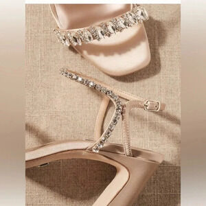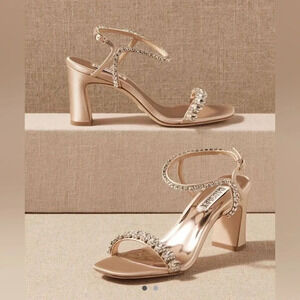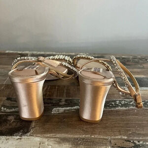 Badgley Mischka Ankle Strap 3 in Heeled Champagne Colored Sandal Women Size 6.5