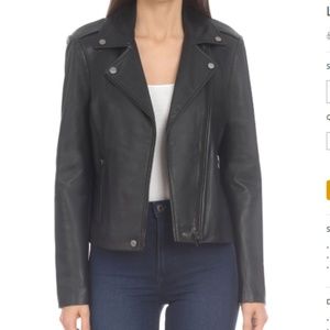 Design details: spread collar, strap detail at shoulders, two front zippered pockets, zippered cuffs