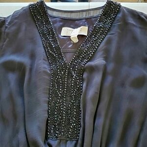 Badgley Mischka Beaded Sheer Top Size L American Glamour Flowy Tunic Dark Fairy