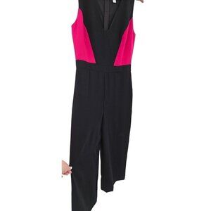 Badgley Mischka Belle Jumpsuit Size 8 Colorblock Wide Leg Stretch Pink Black