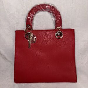 Elevate your style with this stunning Badgley Mischka tote! The red faux leather exterior is adorned with the brand's signature logo pattern and eyelet accents, adding a touch of sophistication to any outfit. This large tote is perfect for everyday use, whether you're running errands or heading to work.