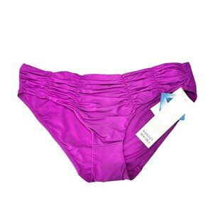 Badgley Mischka Bikini Bottom Sz.6 Hot Pink Ruching Solid Liw Rise Beach
