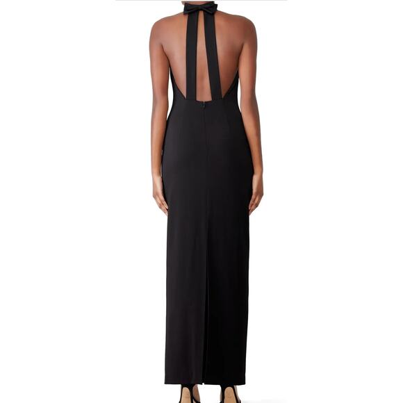 Sophisticated, sultry designer gown with head turning backless bow detail that drapes perfectly to flatter your form. Fully lined Sleeveless. halter neckline. Center back zipper closure. Fully lined. Perfect for galas, black tie, special occasions, holiday parties, new years, going out, special events, cocktail, formal, prom