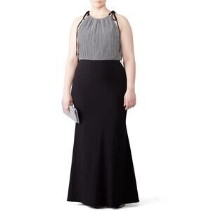 Black odessa (98% Polyester, 2% Spandex). Gown. Sleeveless. Halter neckline with bow detail. Hidden back zipper closure. Fully lined.