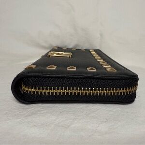 Badgley Mischka Black Faux Leather with Gold Studs Zipper Wallet. Black soft vegan leather. Zip closure. Gold tone hardware and studded detail. Interior has zipper coin pouch and card slots. Excellent condition.