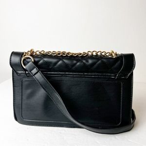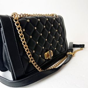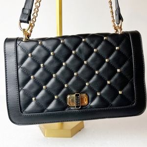 Badgley Mischka Black Flap Studded Gold Bag Leather Crossbody Purse Shoulder Bag