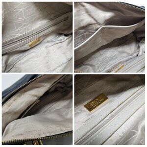 CONDITION: Normal wear on the hardware, zipper handle, twist lock clasp, the hardware on the sides. There is also normal wear on the patent leather around the zipper, lining near zipper. Minor wear on the inside lining and normal wear on lining inside of back zipper outside pocket as shown in the photos.