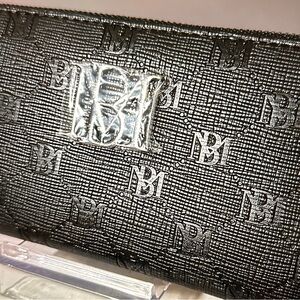 Badgley Mischka Black Logo Imprint zippy long wallet NWT silver tone hardware