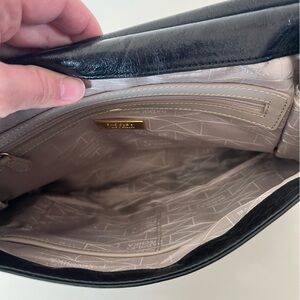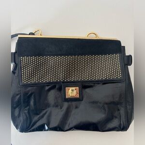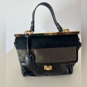 Badgley Mischka Black Patent Leather Calf Hair Gold Hardware Hand Bag