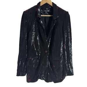 Badgley Mischka Black Reverse Sequined Holiday Party Cocktail Blazer Jacket 4 Good preowned condition. The blazer bunches in some areas. Maybe be missing a few sequins but not noticeable. Size: 4 Approximate measurements with garment laying flat: 20” bust, 30” length, 16” shoulders, 24” sleeve Color: Black and pink Sequin (100% Polyester) Blazer jacket Long sleeves Front button closure Fully lined Front Pockets Holiday parties and black tie events won’t know what hit them when you walk in wearing this twinkling Badgley Mischka blazer. OFFERS WELCOME BUNDLE & SAVE MORE SAME OR NEXT DAY SHIPPING ITEMS PACKAGED WITH CARE