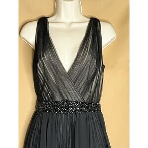 Badgley Mischka Black Pleated Embellished Waist Gown 4