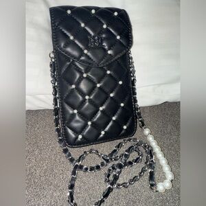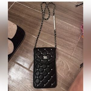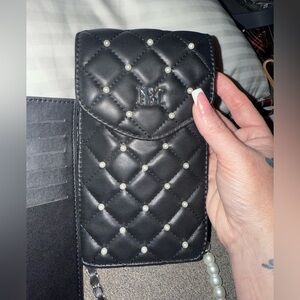 Badgley Mischka Black Quilted pearl Vegan Phone Crossbody Bag with chain strap