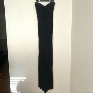 Badgley Mischka Black Ruched Strapless Sweetheart Floor Length Formal Gown Sz 10