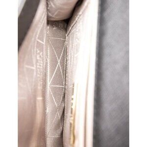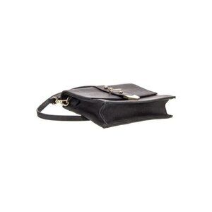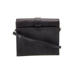 Condition is Very Good, pre-owned. Details: Black Saffiano Leather, Gold-Tone Hardware, Single Adjustable Shoulder Strap, Studded Accents, Logo Jacquard Lining & Single Interior Pocket, Snap & Buckle Closures at Front, Shoulder Strap Drop:21.75", Height: 6.5", Width: 8", Depth: 1.75"